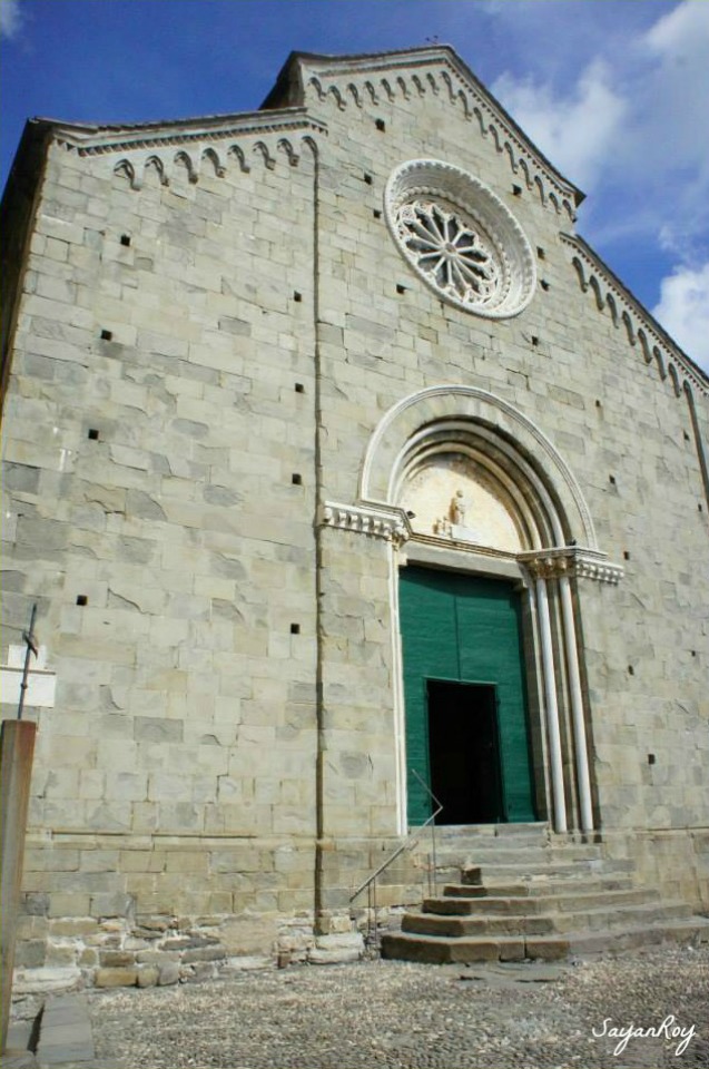 The church of Saint Peter rises in the upper part of Corniglia, Cinque Terre.