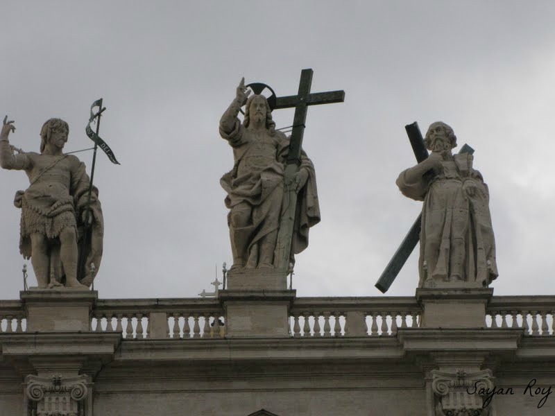 Jesus and the apostoles on the top of the Basillica